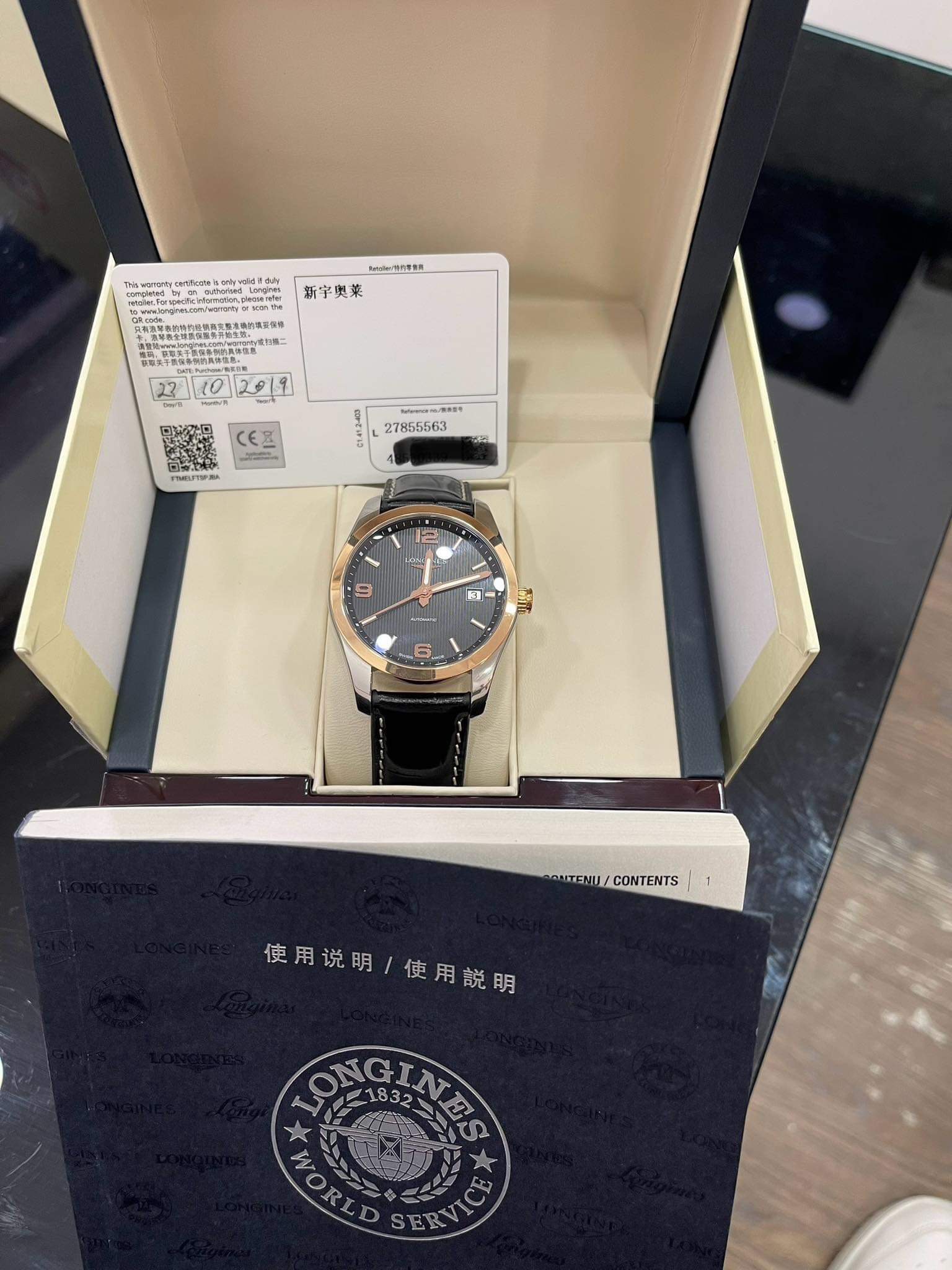 Máy automatic Longines Calibre L619 với 42 h trữ cót.